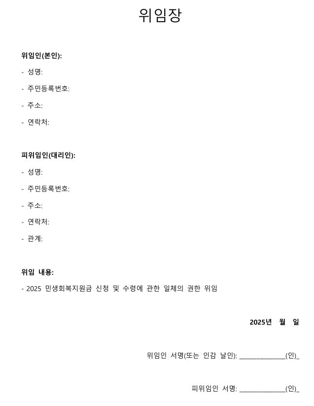 요즘 정부에서 제공하는 민생회복 지원금 신청 소식 들으셨죠? 바쁜 부모님이나 거동이 어려운 가족을 대신해 신청하려는 분들이라면 반드시 필요한 게 있어요. 바로 위임장입니다!